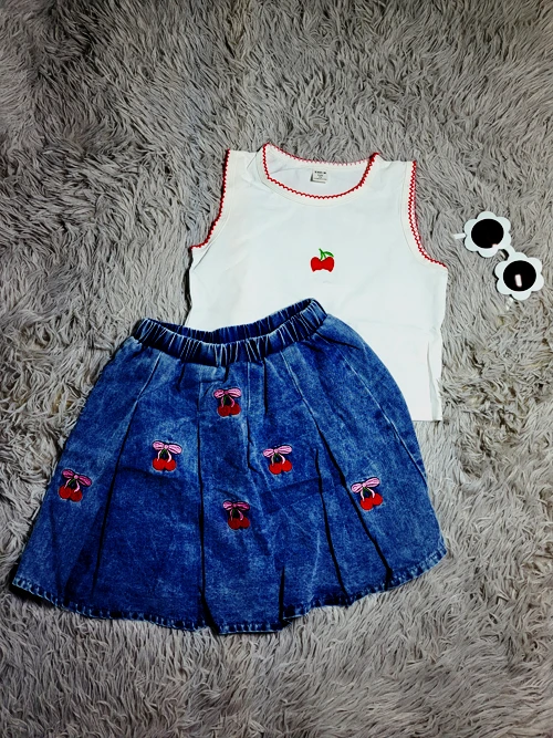 Conjunto de falda jeans y blusa cherries.