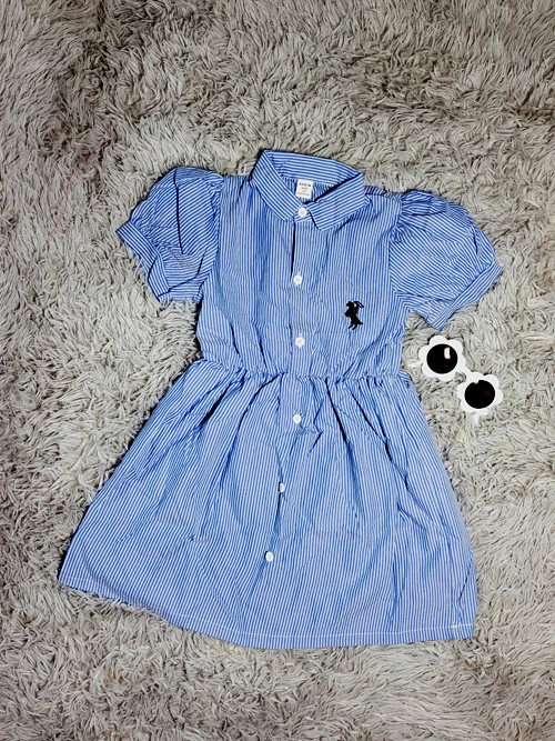 VESTIDO AZUL CON CUELLO Y RAYAS BLANCAS #6
