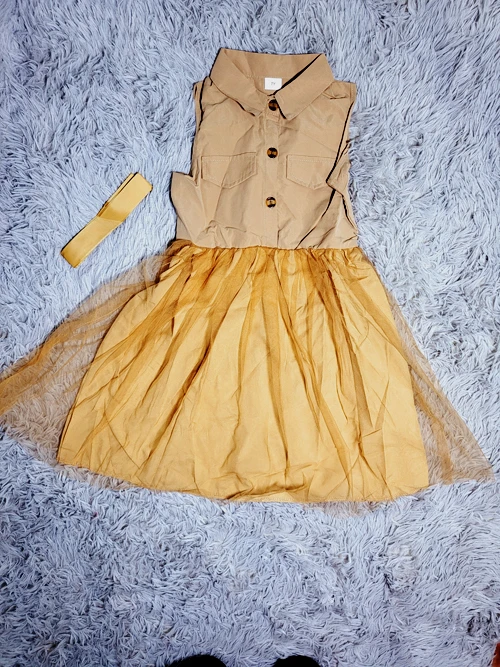 Vestido en color marrón con delicados detalles de tul, aportando un estilo moderno y elegante. Confeccionado con tela suave y cómoda.